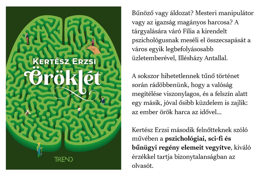 Az éves előfizetéshez, amely 12 lapszámot jelent és 9800 Ft-ba kerül, Kertész Erzsi: Öröklét című könyvét adjuk ajándékba.